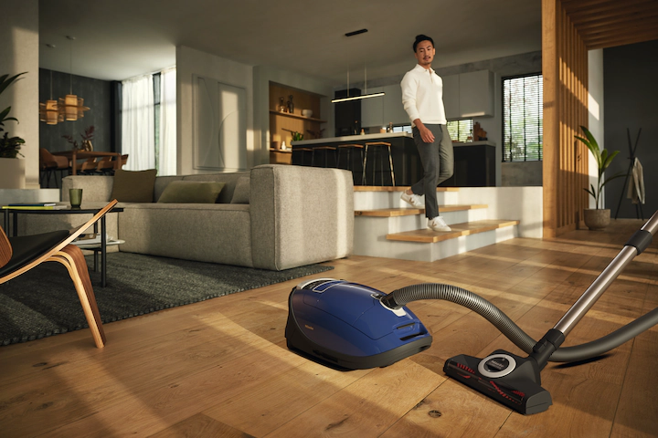 Canister vacuum cleaner with protective parquet floorhead for first-class care of delicate hard floors.