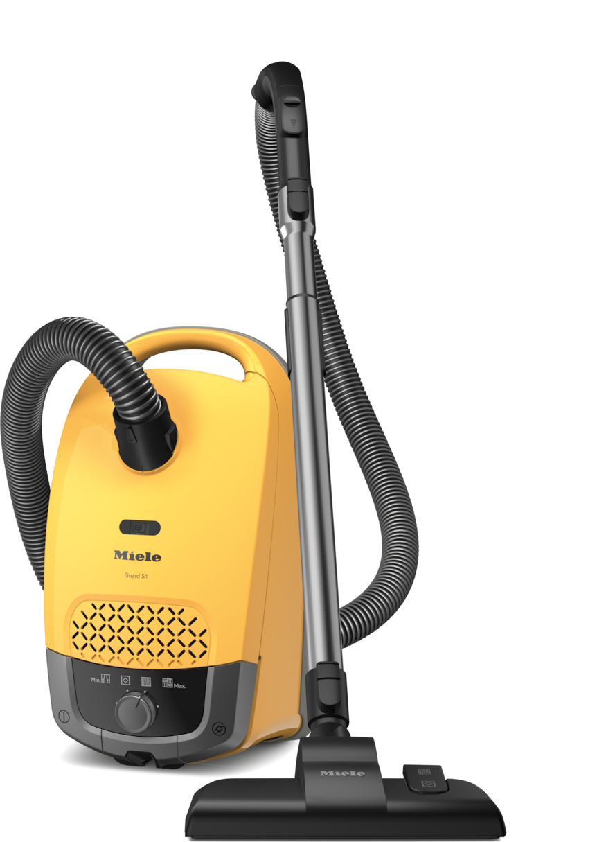 ComfortFit: developed for the highest hygiene standards Ergonomic handle: for comfortable handling 99.99%In accordance with IEC 62885-2:2021 dust retention capacity with AirClean filter Durable: tested for the equivalent of 20 years’ use. During the development phase of the advertised Guard vacuum cleaner series, Miele tested models and core components at various power levels for 750 hours of use (= 37.5 hours p.a.). More: miele.com/20years 10 m operating radius: effortless cleaning of larger areas Effortless handling thanks to light and compact design Filter system with ComfortFit. Maximum hygiene and cleanliness. Miele’s high-performance filter system with ComfortFit ensures better air quality with less dust after vacuuming. Powerful cleaning performance. Innovative technologies for added thoroughness. The perfect combination of high suction power and flow-optimized airways. Compact design. Space-saving and lightweight. Compact and agile: Its handy size saves space and makes the Miele Guard S1 highly flexible. HyClean Air TU. The right dustbags. With the best filter performance for clean air and to support a long vacuum cleaner service life.
